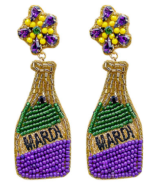Mardi Gras Beaded Bottle Earrings - OS is backordered and will ship as soon as it is back in stock.