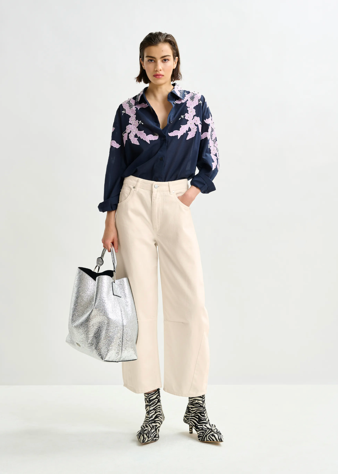 - Silver hardware and logo