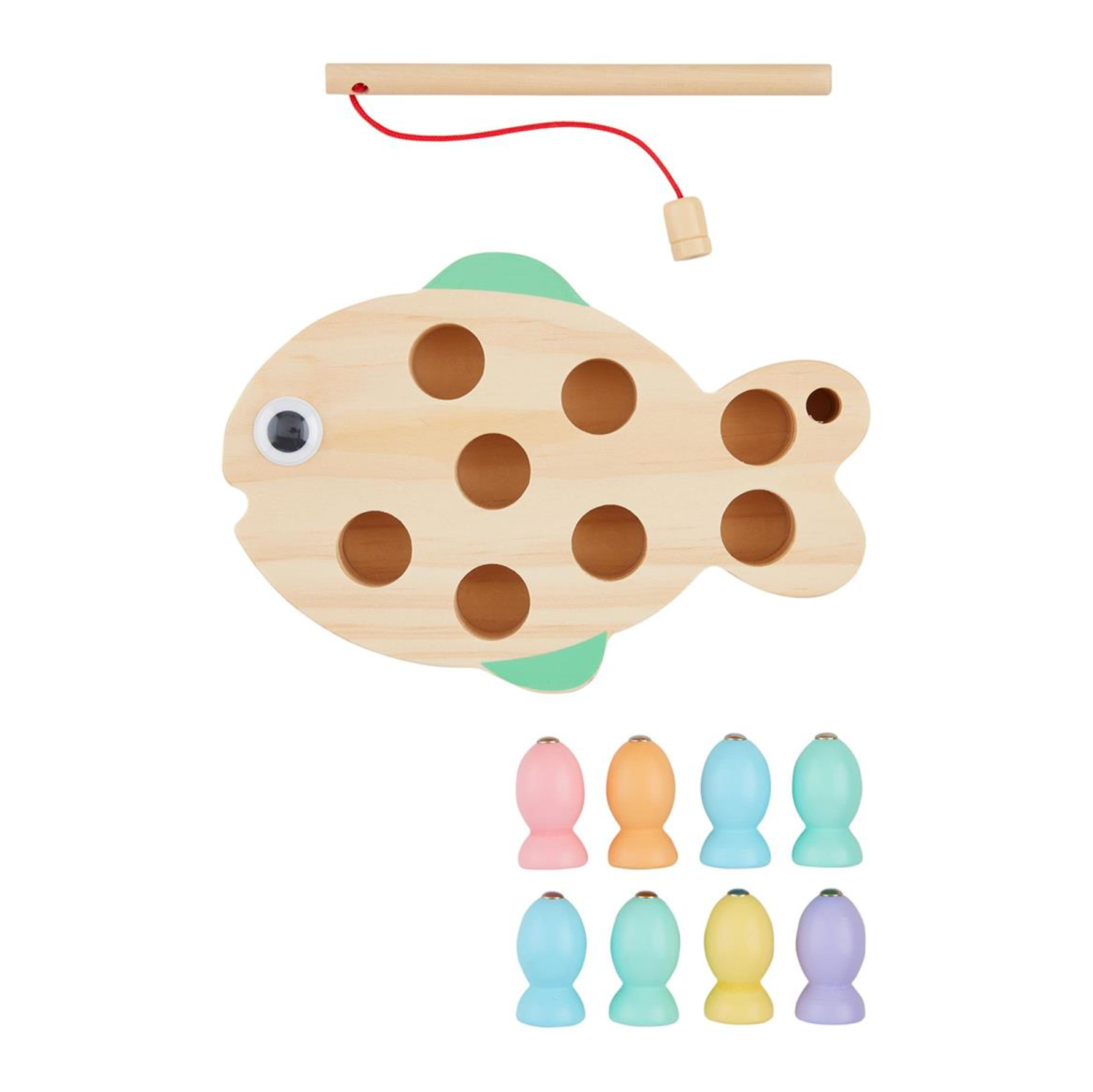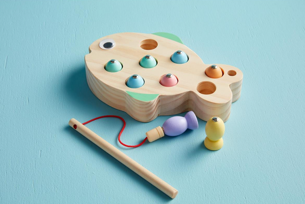 Dive into imaginative playtime with this charming 9-piece magnetic fishing set! Little anglers will love casting their wooden pole to catch eight colorful wooden fish from the sturdy wooden base. Perfect for developing hand-eye coordination and keeping kids entertained for hours on end. Safe for ages 3 and up, this delightful toy brings the joy of fishing indoors, rain or shine. A timeless classic that sparks creativity and outdoor-inspired fun!