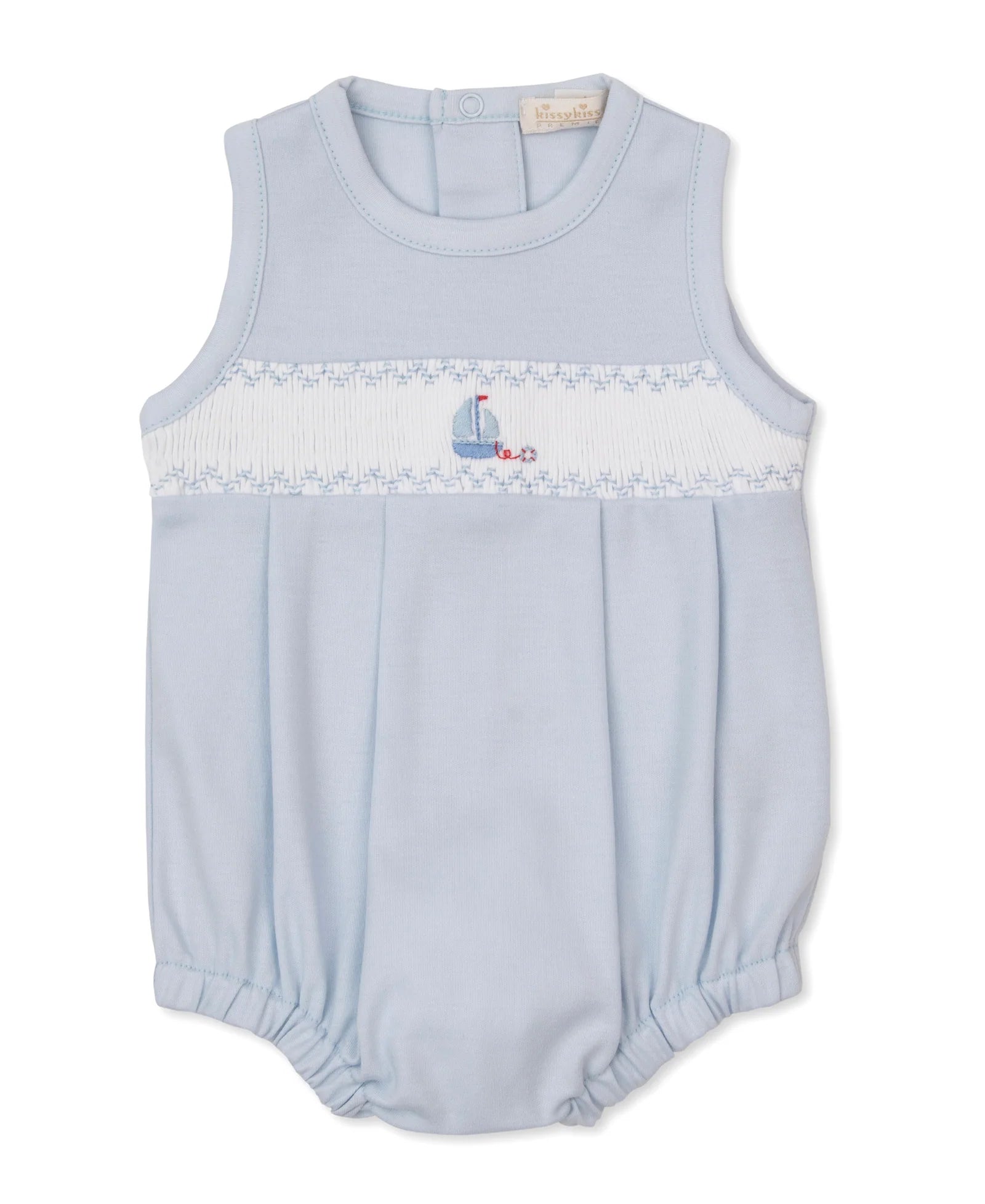 Beautiful hand smocked detailing and a little embroidered sailboat make this bubble perfect for your baby. Made from the softest Pima cotton for ultimate comfort.