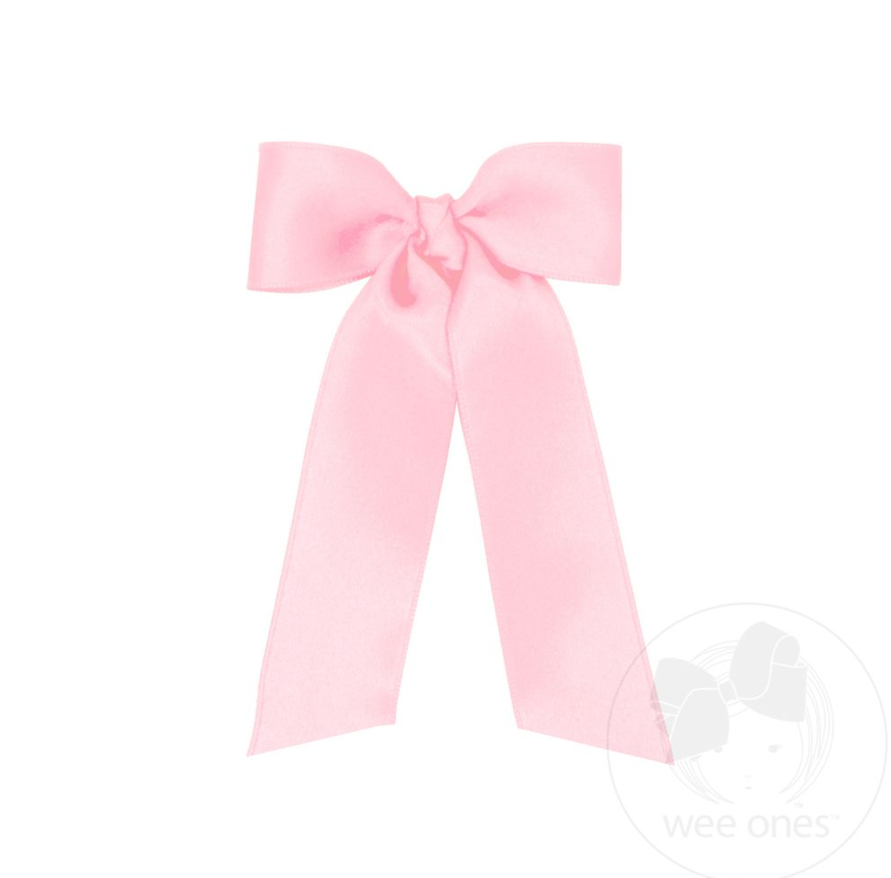 We're loving this hot new trend! Check out this adorable mini French satin bowtie with a knot wrap and 4.5 inch streamer tails. This bow is sure to stay in her hair all day with our patented WeeStay™ no-slip hair clip.