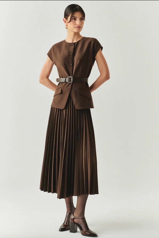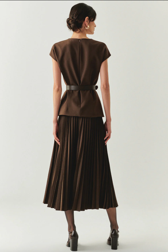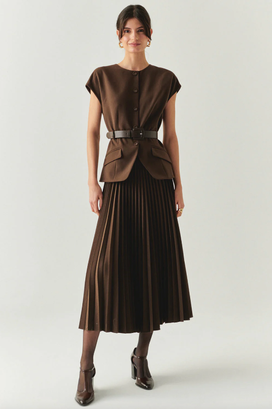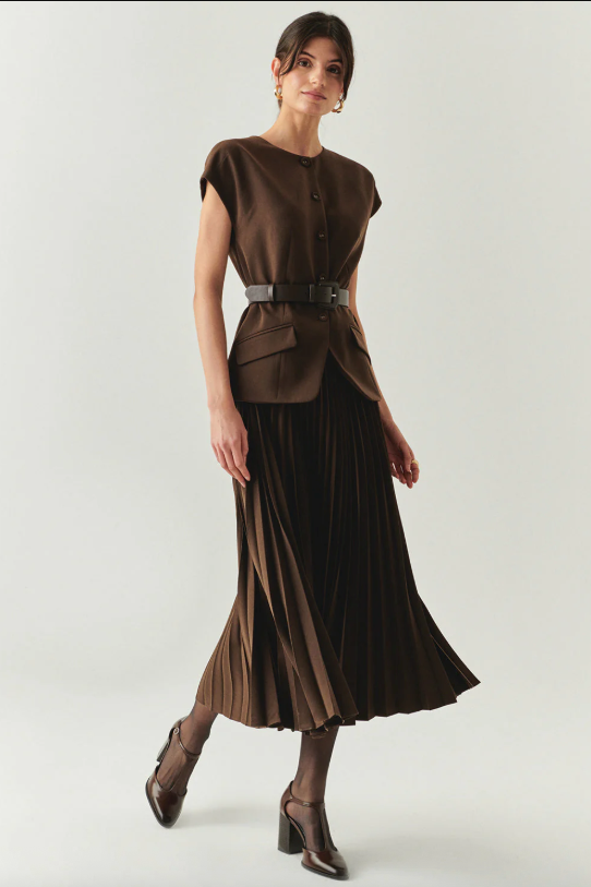 Jolie Sleeveless Pleated Dress in Brown