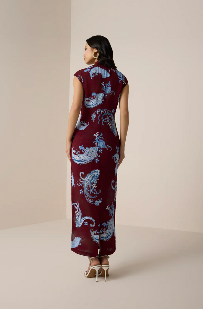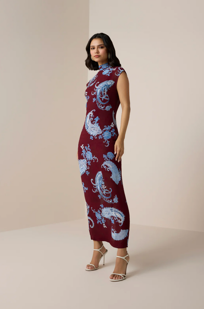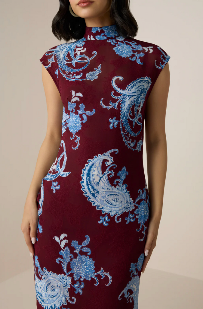 Elevate your fall wedding guest look with the Long Jacquard Dress in Merlot. Its rich, deep hue and intricate textured fabric offer a refined elegance perfect for autumn celebrations. The flowing silhouette provides graceful movement while maintaining a polished appearance, ensuring you stand out with timeless sophistication. Designed for comfort and style, this dress is an ideal choice to complement the season’s warm palette and festive atmosphere.