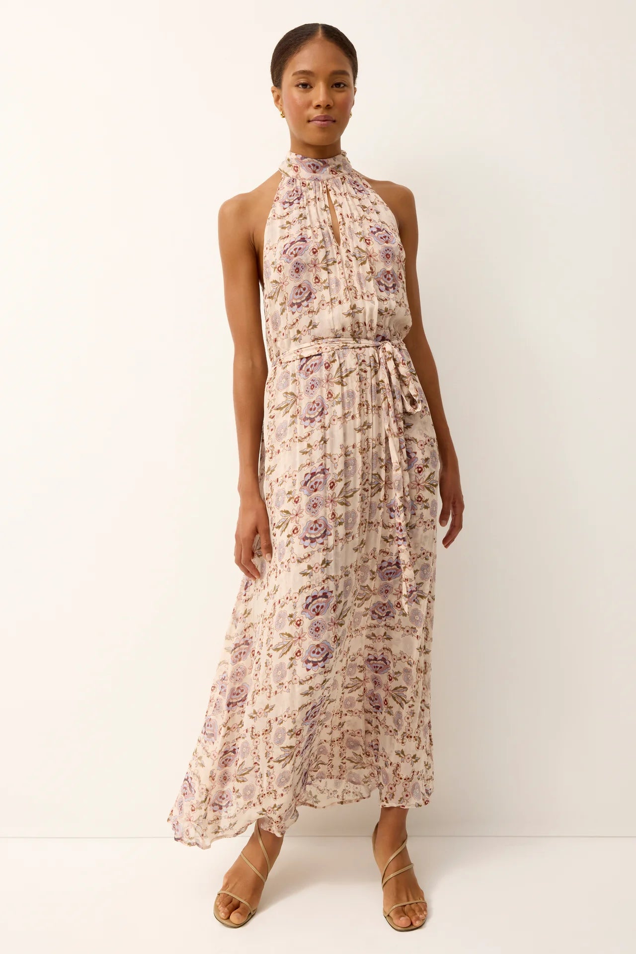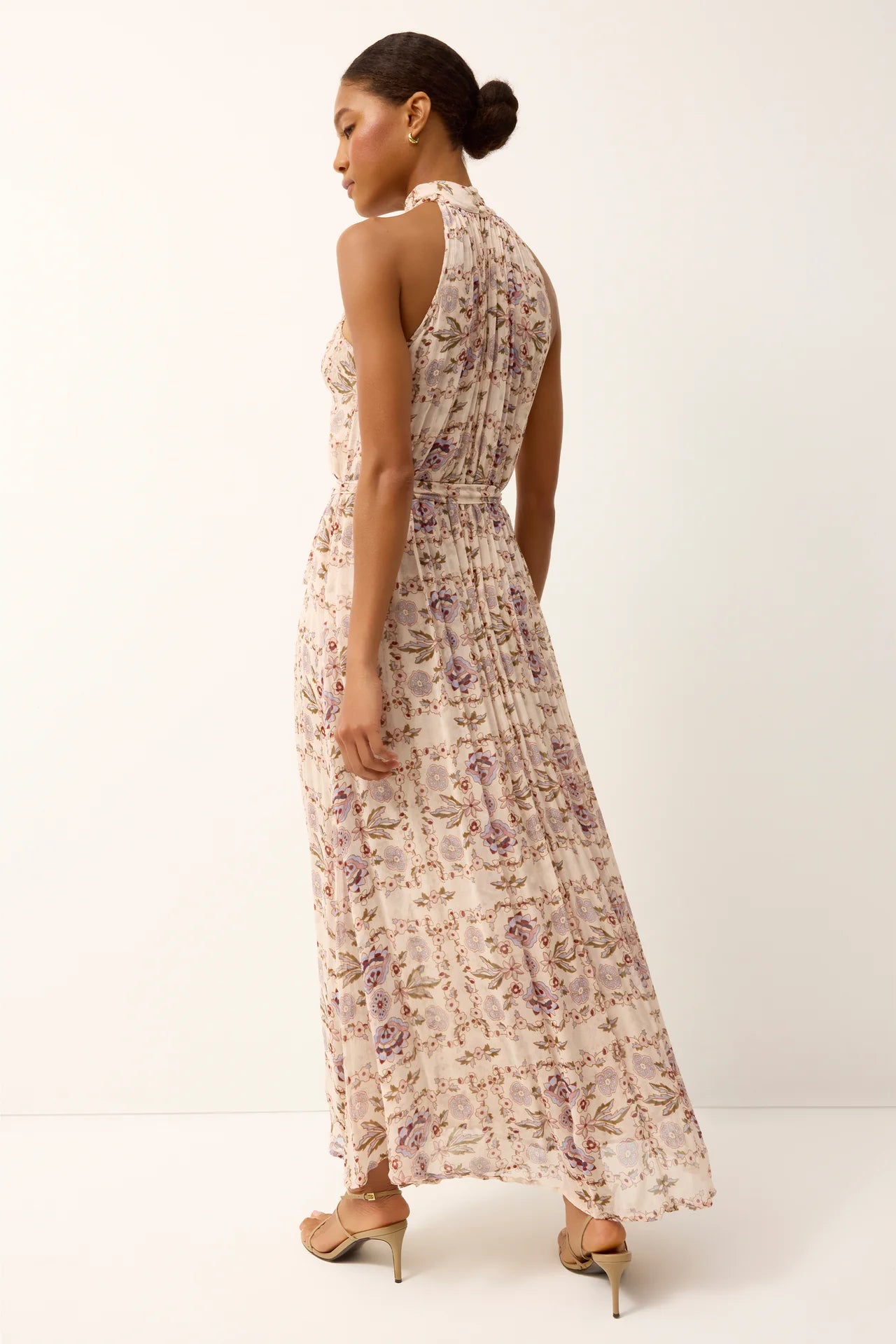 The Penelope dress returns for spring in the Garden floral print, offering a romantic statement silhouette with timeless appeal. Designed with a halter-style neckline and subtle keyhole detail, this pleated maxi shape drapes beautifully over the body and is finished with an optional sash belt for added definition. Light, relaxed, and easy to wear, Penelope transitions seamlessly from spring events to summer evenings, pairing just as effortlessly with simple sandals by day as it does with heels for more polished occasions.
