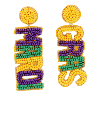Beaded Mardi Gras Earrings in Yellow/Purple/Green