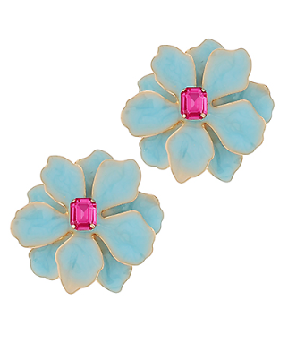 Big Flower Color Coated Earrings in Lt. Blue