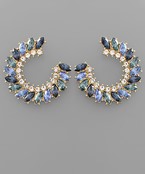 Pave Marquise Circle Earrings in Blue/Gold