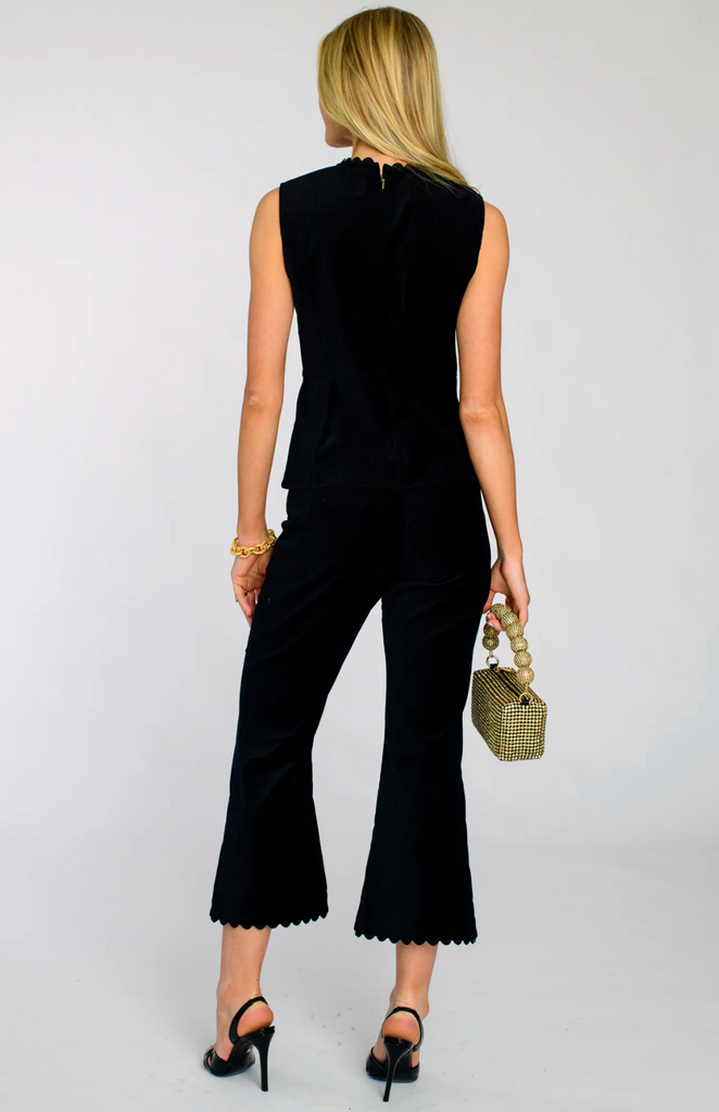 The Claire Top in solid black features a luxurious stretch velvet fabric, offering both elegance and comfort. This timeless silhouette is perfect for everything from a day in the office to a Holiday ensemble.