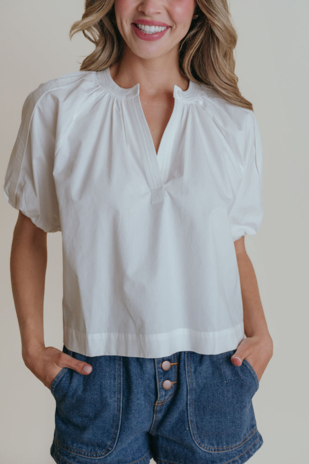 Henley Top in White - XS is backordered and will ship as soon as it is back in stock.