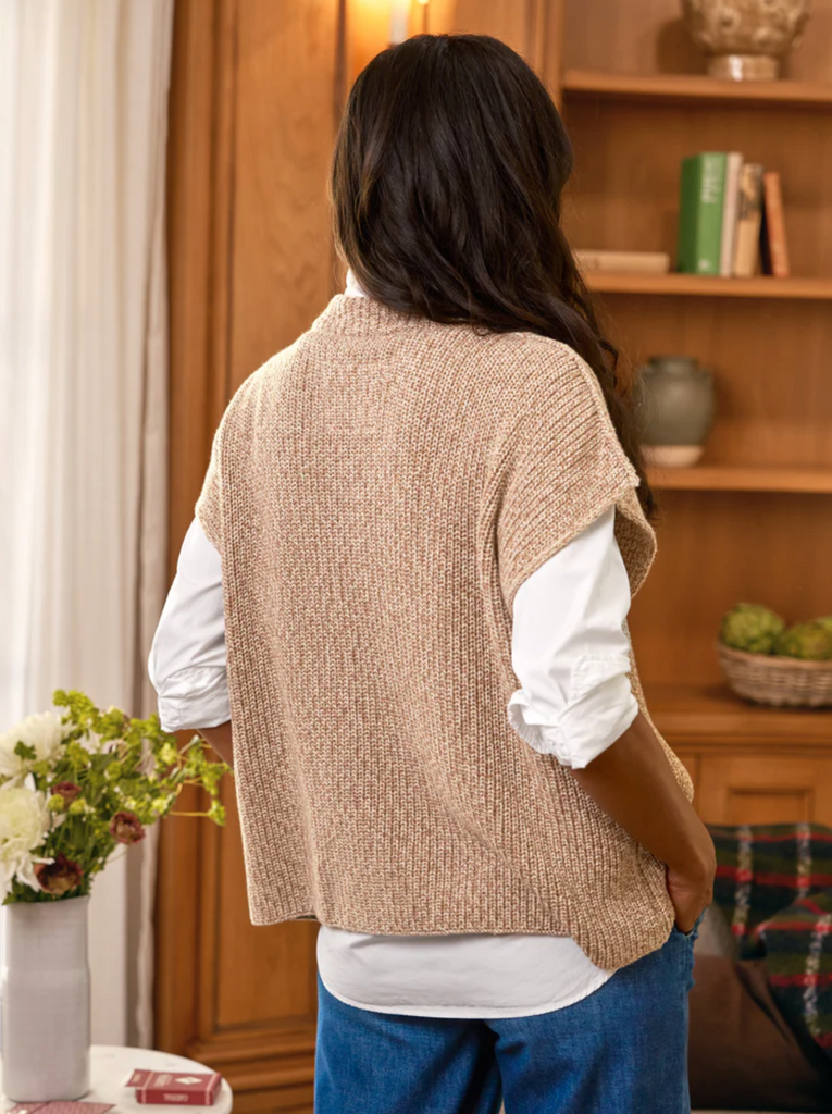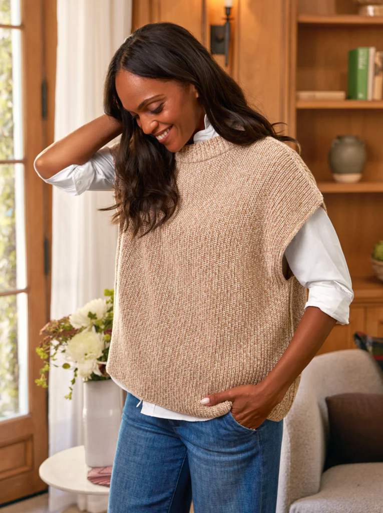 - Iconic pullover sweater vest with an exaggerated crew neckline