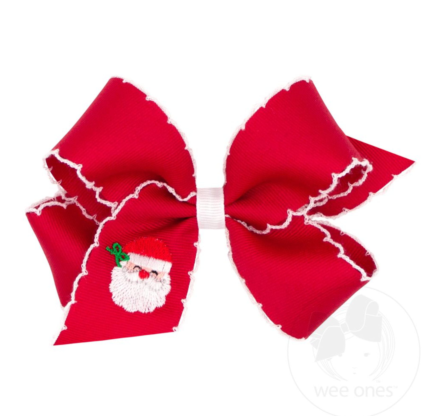 Celebrate the magic of the season with this festive grosgrain hair bow, featuring a cheerful moonstitch edge and your choice of classic Christmas embroidery. Available in red or white ribbon with contrasting trim, it’s the perfect finishing touch for school parties, holiday photos, and cozy winter outfits. This bow is sure to stay in her hair all day with our patented WeeStay™ no-slip hair clip.