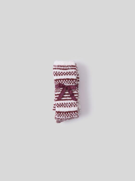 Cozy Chic Checkered Stripe Sock Set in Crimson/Stone