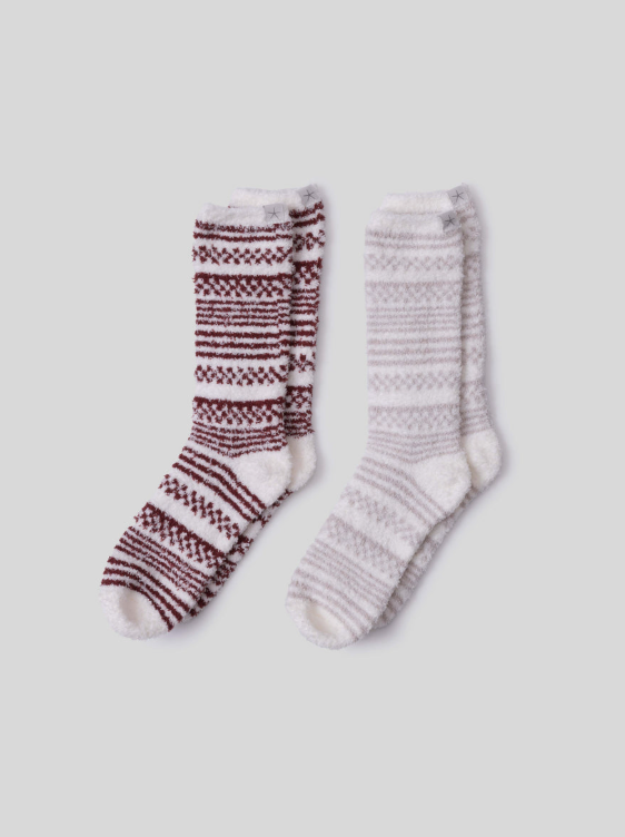 Experience the perfect blend of style and comfort with our CozyChic® Checkered Stripe Sock Set. This two-pair collection features mid-calf length socks adorned with an intricate all-over checkered and striped jacquard pattern. Crafted from premium materials, these socks deliver the signature softness Barefoot Dreams is known for while providing reliable support and durability.