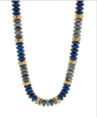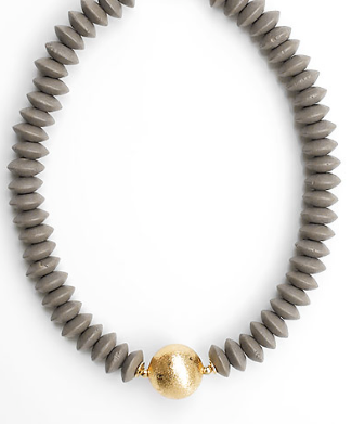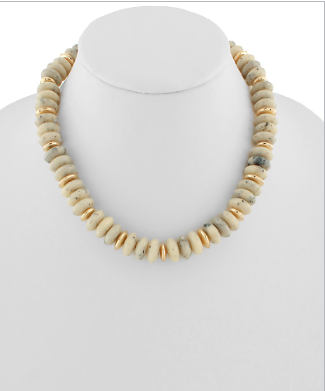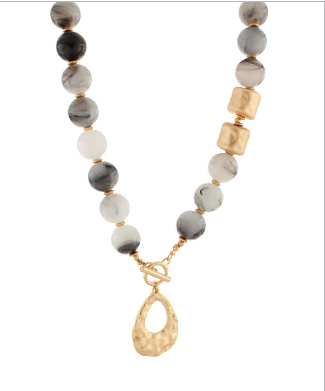 Wide Bead Stone Textured Necklace in Grey/Gold