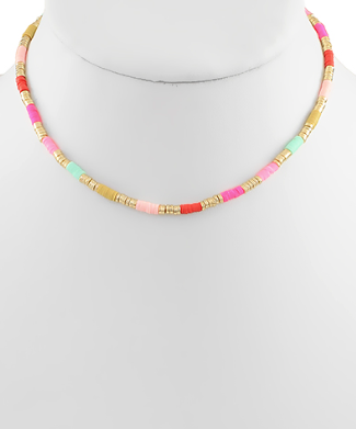Rubber & Metal Beaded Choker in Red/Multi