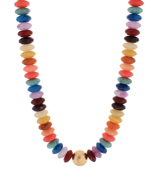 Metal & Color Rondelle Beads Necklace in Dark Multi/Gold