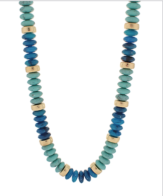 Wide Bead Stone Textured Necklace in Turquoise/Gold