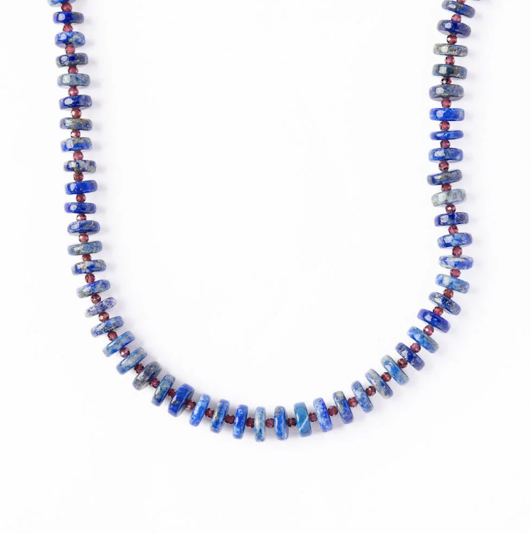 Vivianne Lapis With Garnet Necklace 18"
