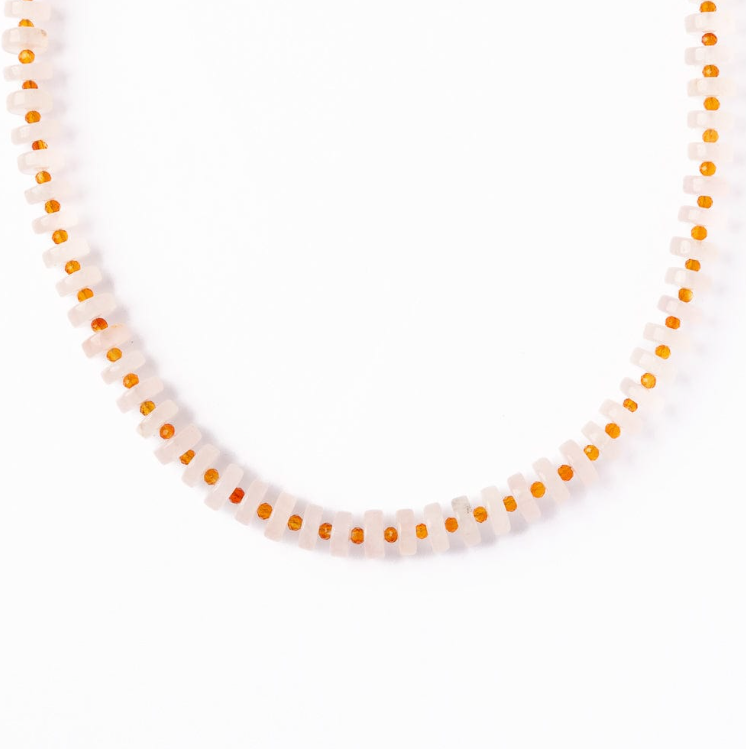 Vivianne Rose Quartz Disc With Carnelian Necklace