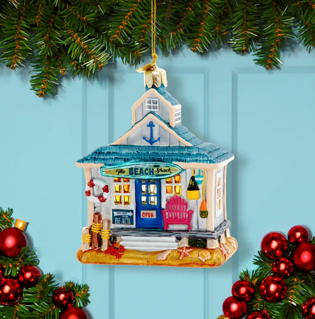 This Noble Gems™ Glass Beach House Ornament from Kurt Adler is a charming and coastal-inspired addition to your holiday decorations. Crafted with the quality and attention to detail characteristic of the Noble Gems™ collection, this glass ornament brings a touch of seaside elegance to your Christmas tree. Featuring the image of a beach house, this ornament captures the serene and relaxed atmosphere of coastal living. The glass construction adds a touch of sophistication, and the ornament may include details like beach-themed decorations, seashells, or other elements that evoke the beauty of the shore. This ornament is not only a festive decoration but also a reminder of sunny days, sandy beaches, and the joy of coastal living. Whether you have a beach-themed Christmas tree or simply want to infuse a bit of seaside charm into your holiday decor, this ornament is a wonderful choice. Hang the Noble Gems™ Glass Beach House Ornament on your Christmas tree, pair it with other coastal-themed decorations, or give it as a thoughtful gift to someone who appreciates the beauty of beach life. Celebrate the holiday season with a touch of coastal elegance and relaxation.