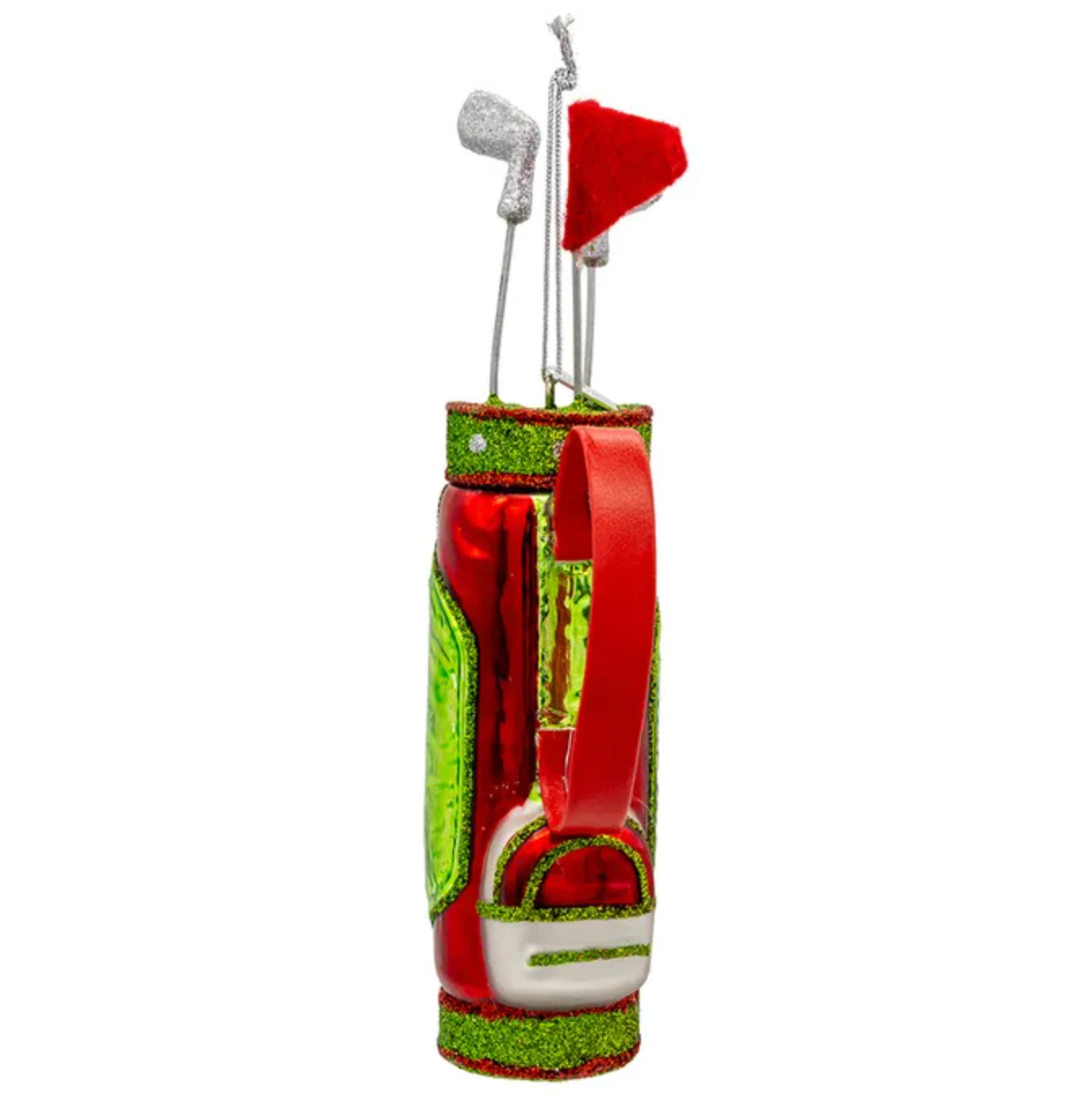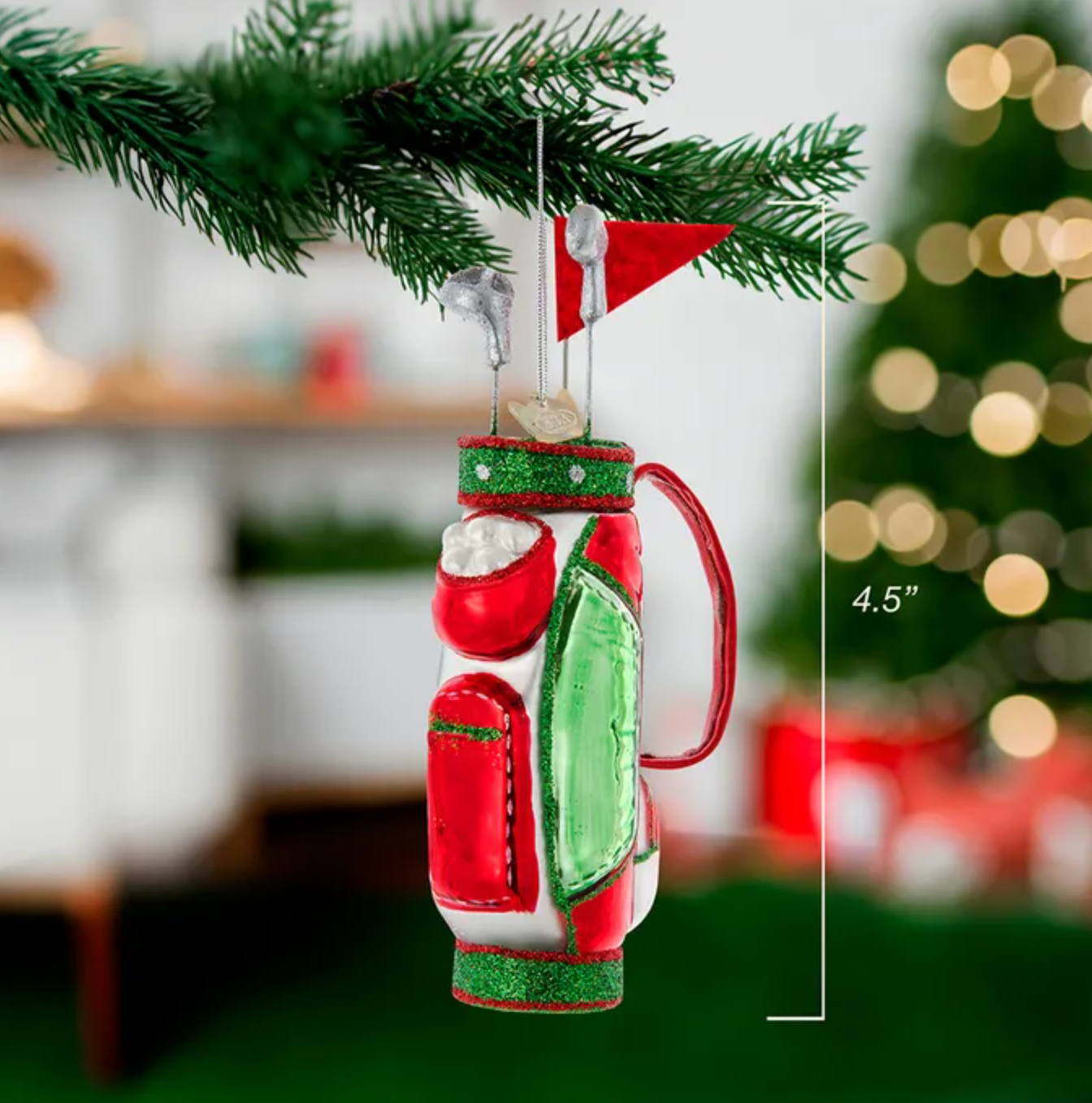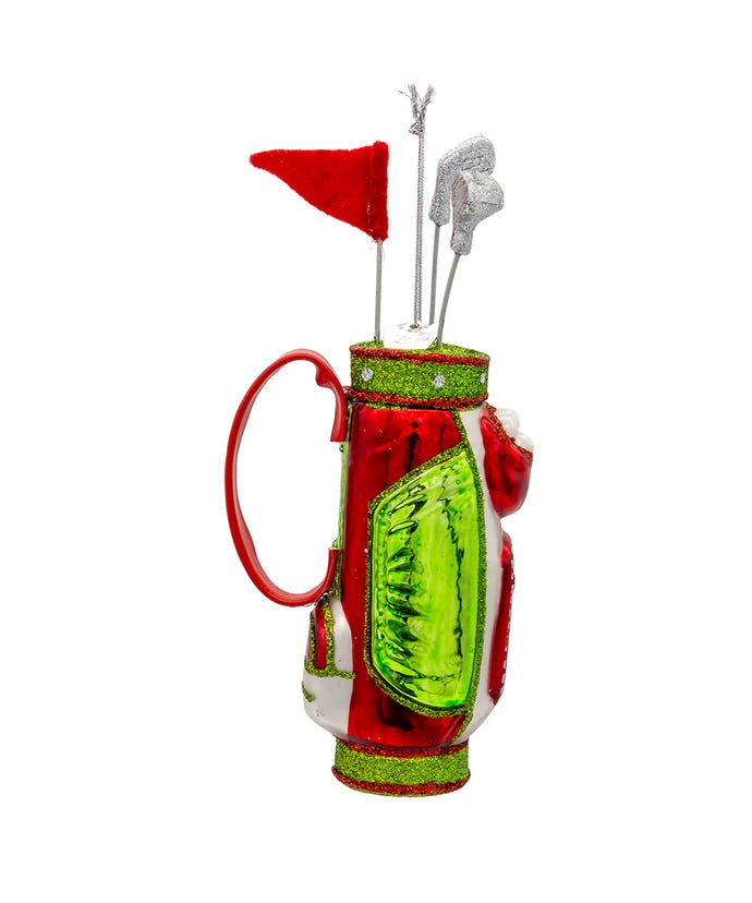 Noble Gems™ is a collection of beautiful glass ornaments celebrating different occasions, meant to last year after year so that you could preserve and reflect upon your memories each holiday season. Each ornament is an intricate work of art that is sure to be treasured. this glittered golf club and bag ornament from Kurt Adler is a festive addition to your Christmas tree. It features silver glittered golf clubs in a red, white and green glittered golf bag with a red flag.