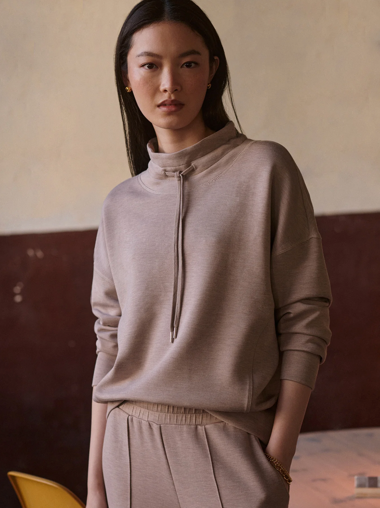 The Oakdale sweat is a casual, on-the-go style with a built-up mock neck and tie channel. Throw on with the coordinating Slim Cuff pant for a DoubleSoft® look that’ll keep up with your day.