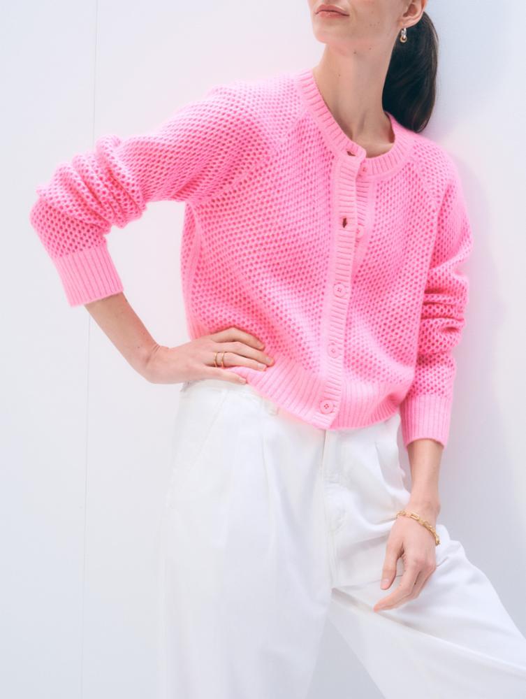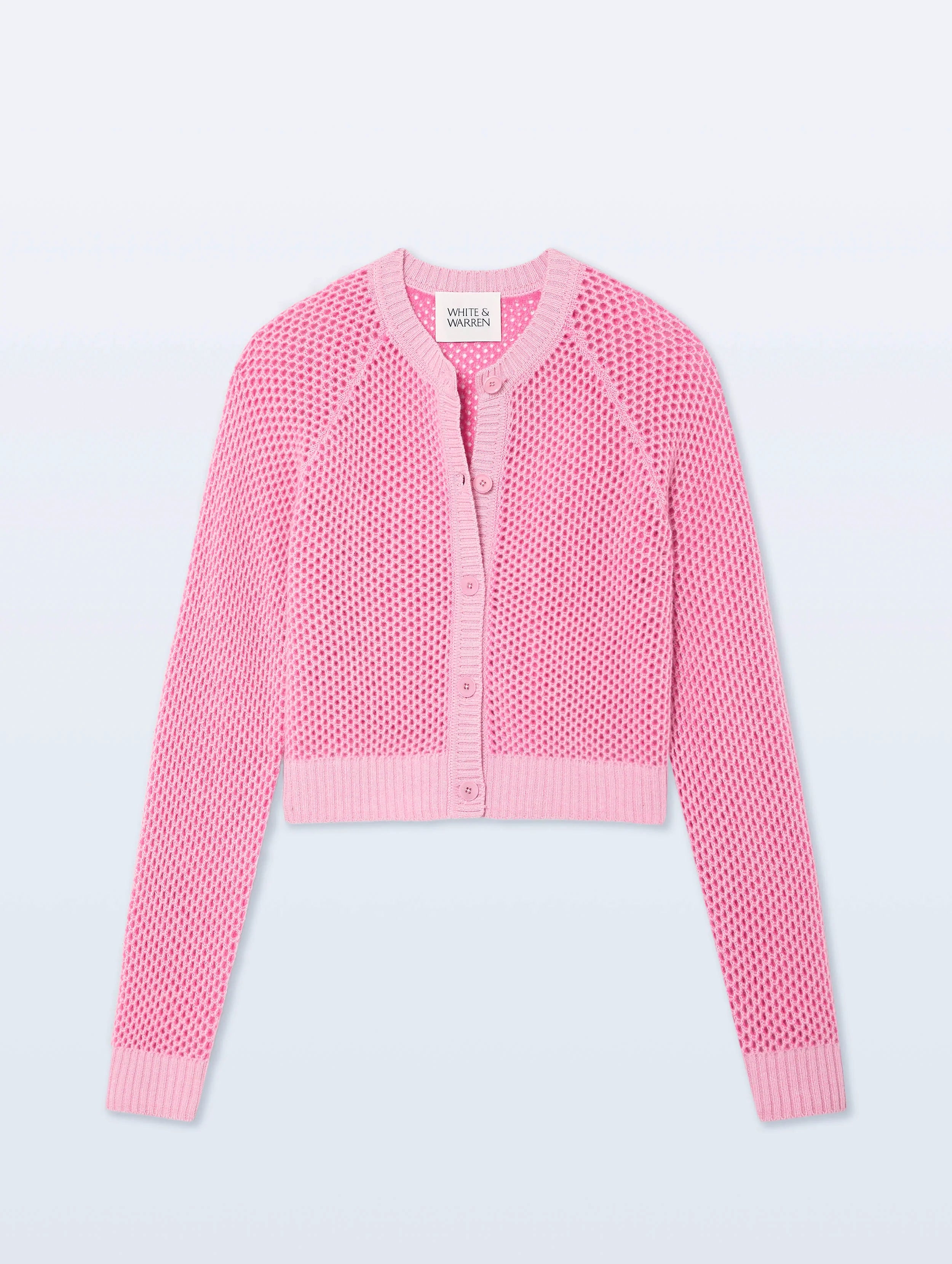 Cashmere Mesh Cardigan in Pink Buds/Dayglow