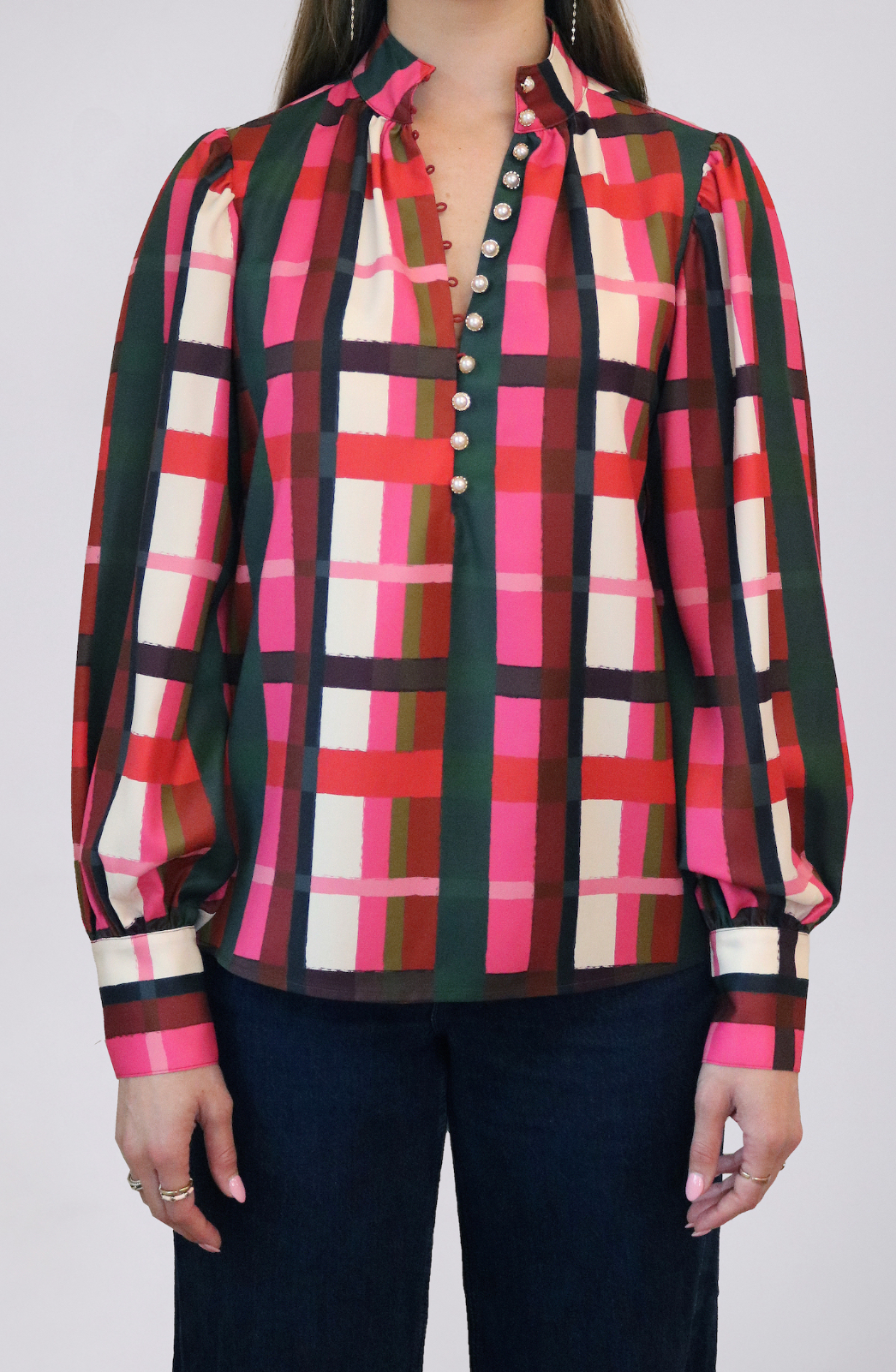 Leland Blouse in Holiday Plaid