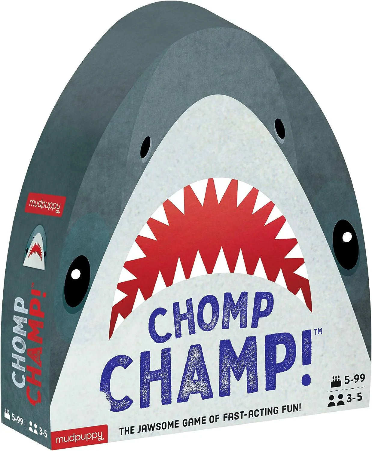 The Chomp Champ! Game is a fun twist on the classic game of spoons. Collect 4-of-a-kind and grab a shark tile, all other players then race to grab a shark tile, trying not to be the player left without one. Lose 6 shark teeth tokens and you're out! A wonderful new addition to game nights everywhere!