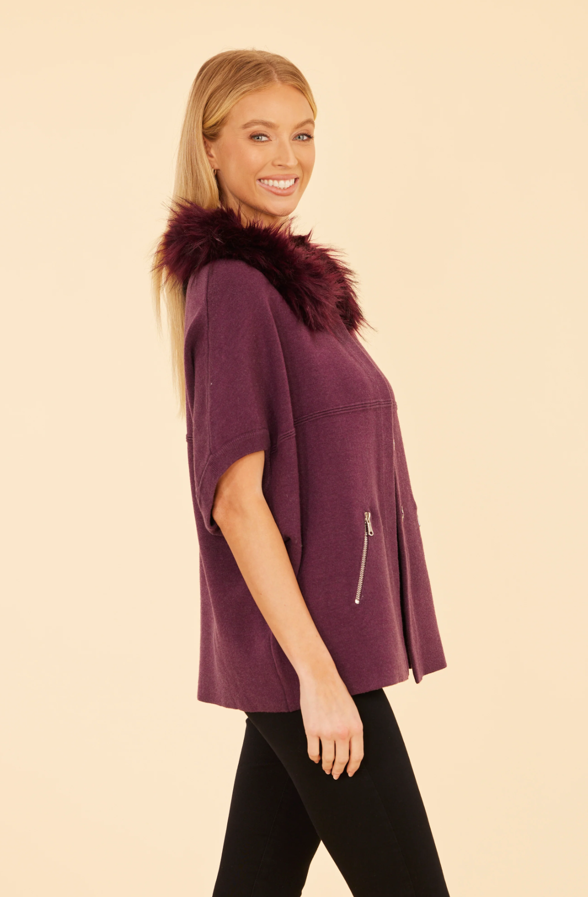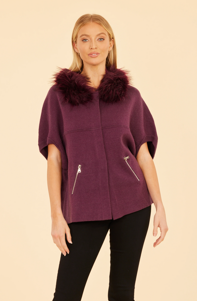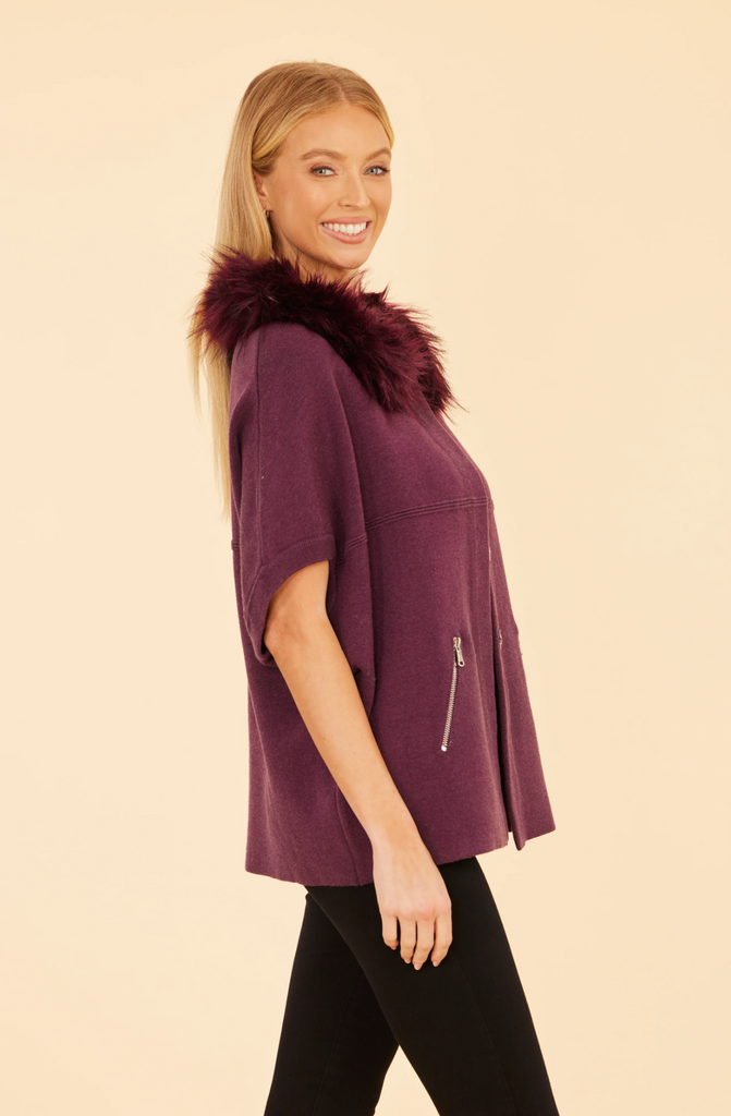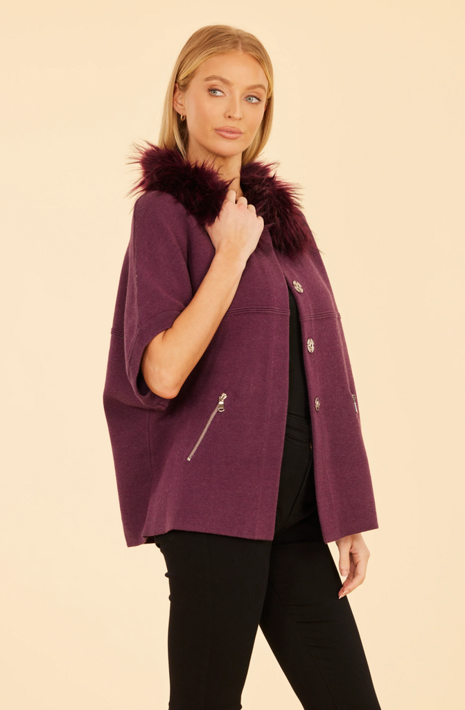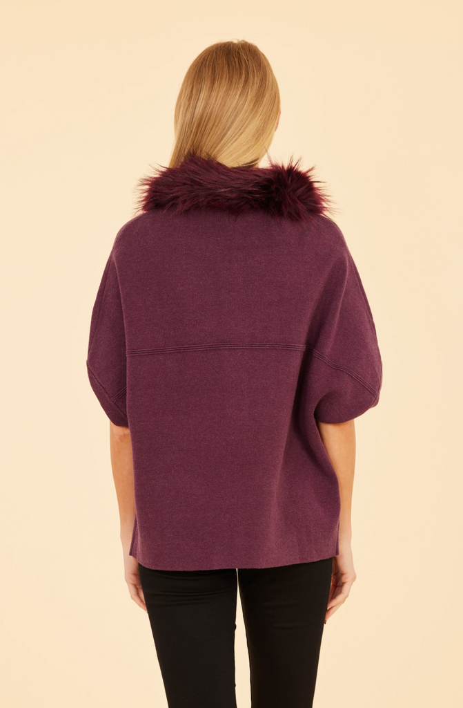 Faux Fur Collar Knit In Plum