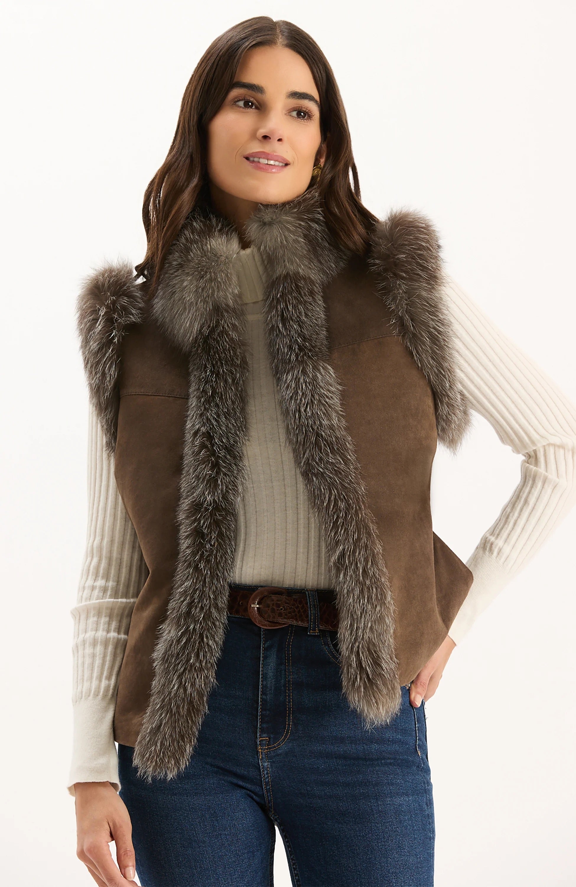Foxy Fur Vest in Walnut