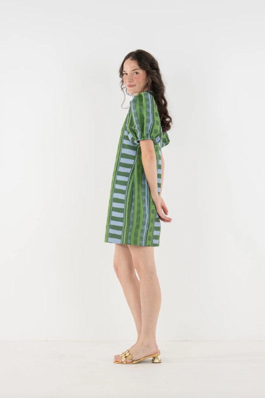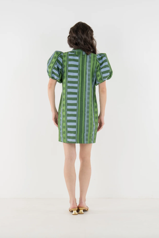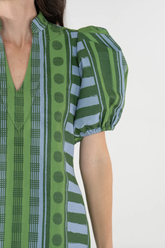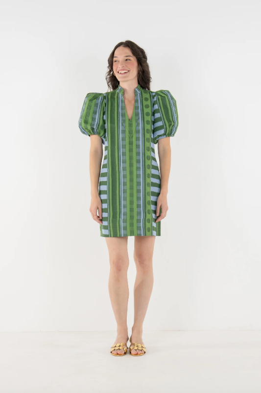 The Hampton Mini in Forest Jubilee is an effortless statement with refined detail. Designed with a mandarin-style collar, puff sleeves, and functional side pockets, this silhouette feels relaxed yet thoughtfully tailored for a flattering fit. Printed on a luxe jacquard fabric, Forest Jubilee offers soft structure and subtle sheen, elevating the look. Easy to dress up with heels or style casually with sneakers, this mini is versatile and polished with ease.