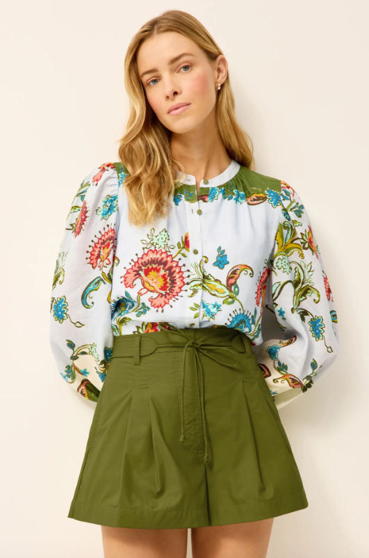 With slightly puffed sleeves and a clean button-front silhouette, the new Kendra blouse makes a subtle statement while delivering instant polish. Its even hem and hip-skimming length allow it to be worn tucked or untucked with ease. We love it styled with Lander shorts or our favorite jeans for a look that feels refined and versatile for everyday wear.