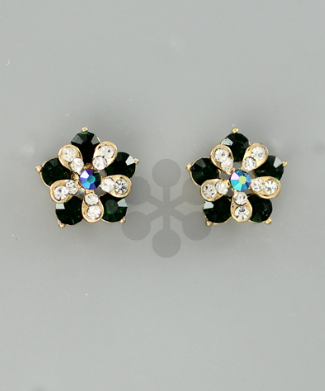 Paved Crystal Flower Post Earring in Emerald/Clear/Gold