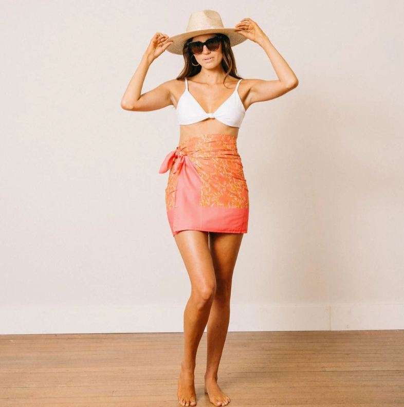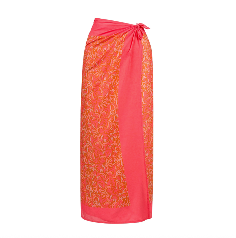 The Pink Folk Floral Sarong, made from cotton voile, is a versatile beach cover-up that can be worn as a skirt, dress, or scarf. Stay stylish and comfortable with this easy-to-pack summer essential.