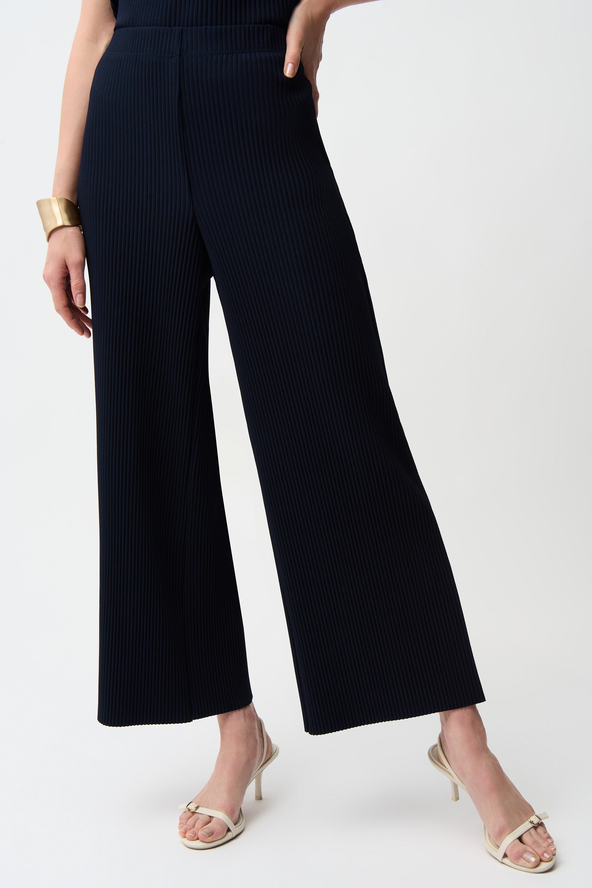 Pleated Scuba Crepe Wide Leg Pull-On Pants in Midnight Blue