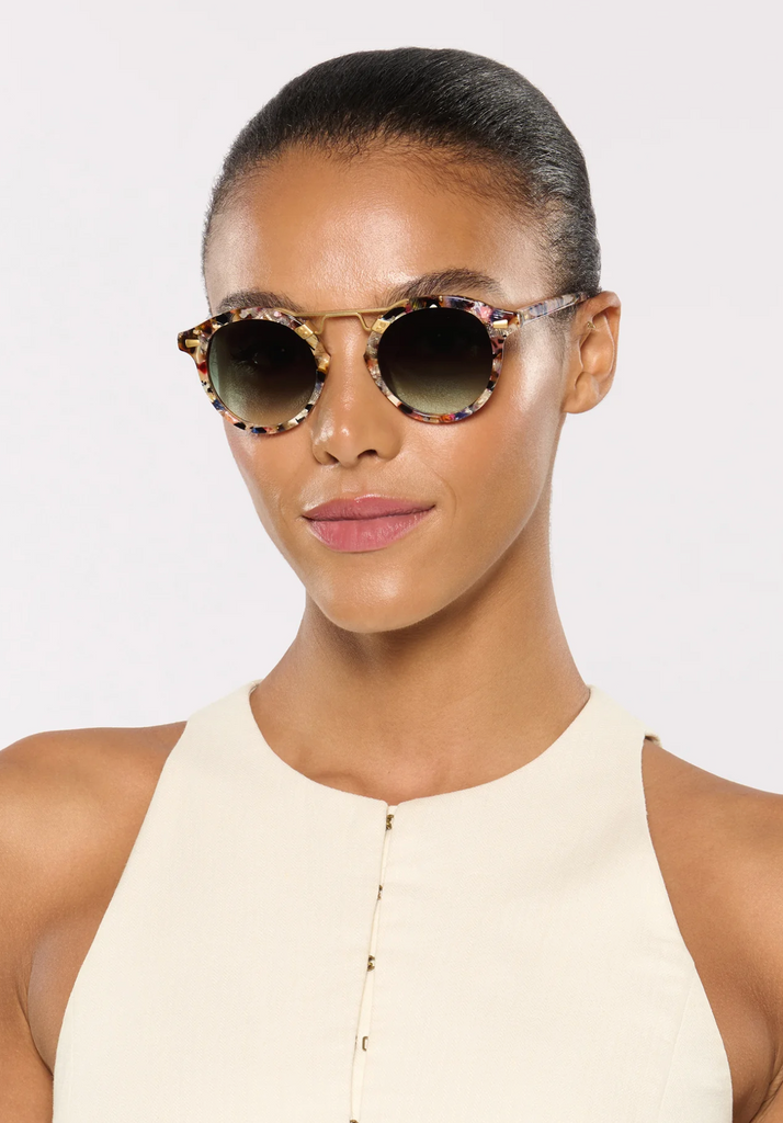 Krewe's iconic classic. Inspired by the historic cast-iron balconies found in New Orleans’ French Quarter, the STL II’s rounded oversized silhouette complements every face shape while its distinct brow upgrades y’alls everyday uniform. Easy wear is a given with sturdy-yet-comfortable supports at the nose and temples.