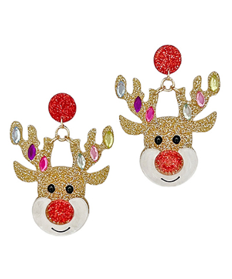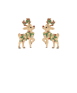 Christmas Rudolph Stud Earrings in Clear/Gold
