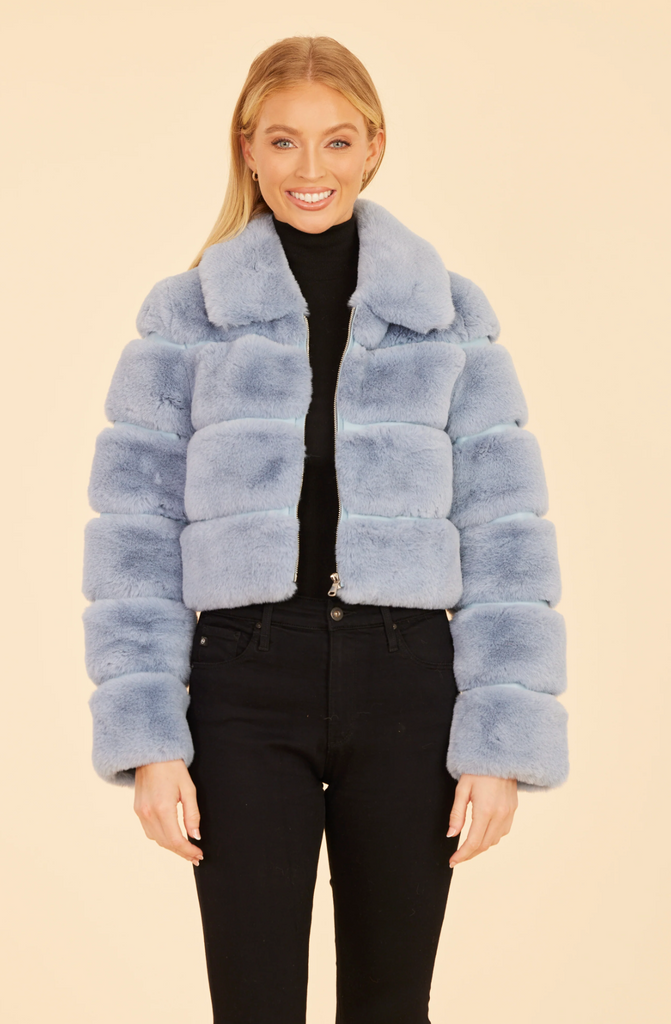 Paneled Faux Fur Cropped Jacket In Light Blue