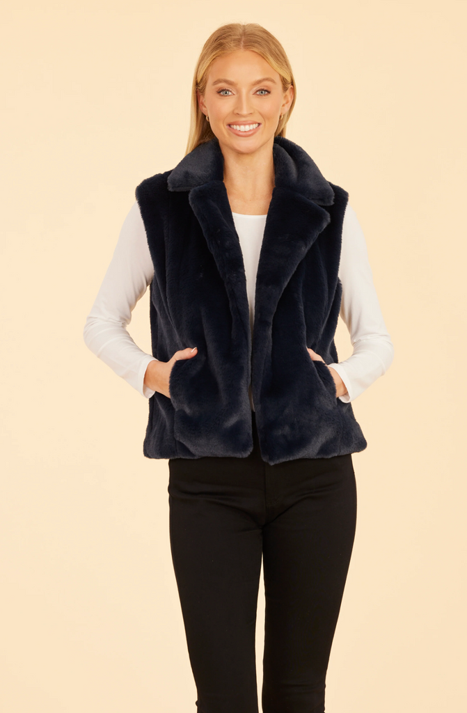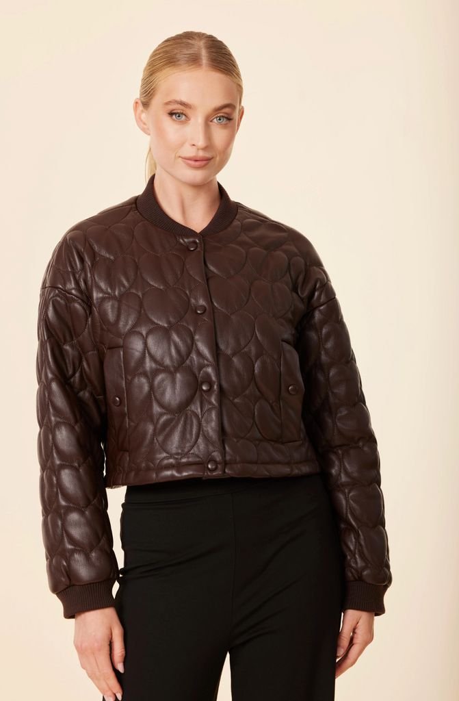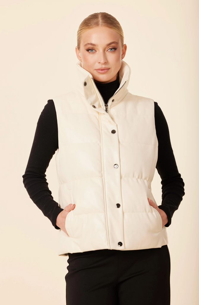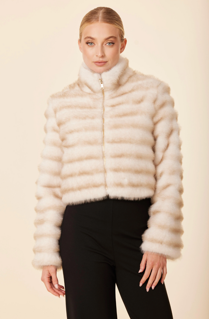 Faux Mink Fur Grooved Zip Jacket in Creme/Brown