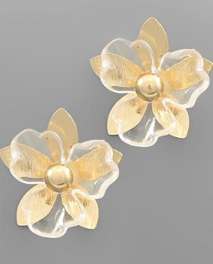 Acrylic & Metal Flower Earrings in Clear/GD
