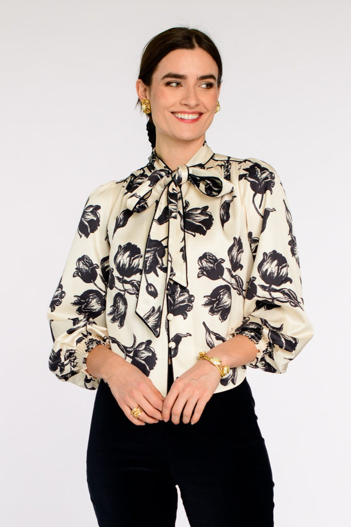 Brit Bow Blouse in Snow Tulip