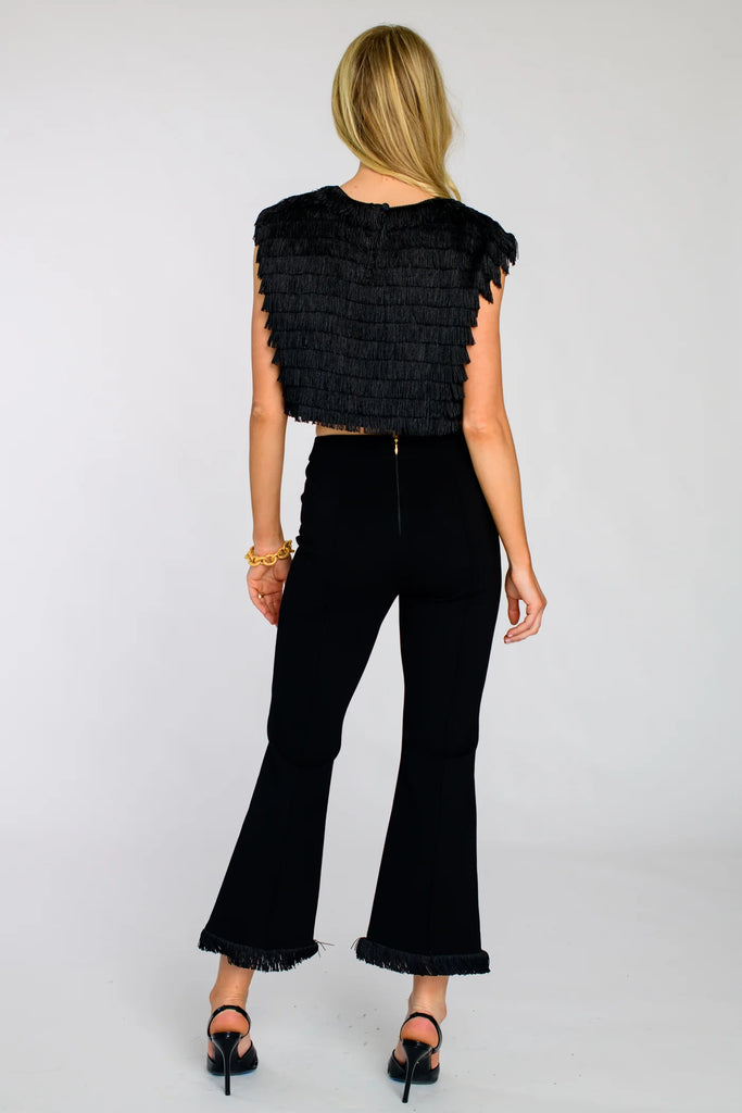 A modern update of the classic shell silhouette, ourJackie top has quickly become an EJ favorite. Cropped just enough to pair with shorts or skirts while still providing full coverage, Jackie is a versatile piece made extra special this season with layers of black fringe.